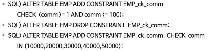 4. CHECK = 컬럼의 값을 어떤 특정 범위로 제한 (조건걸기)