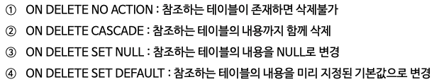 *cascade : 참조 테이블과 같이죽자 / 같이 바꾸자...